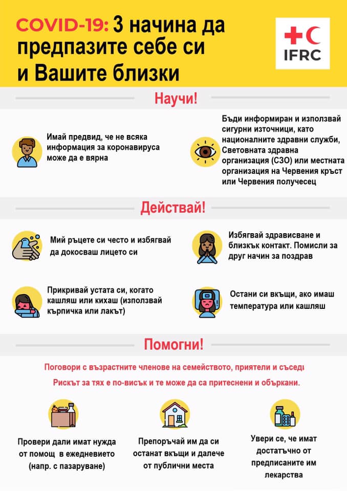 Българският Червен кръст се присъединява към препоръките на официалните институции за предпазване от разпространение на