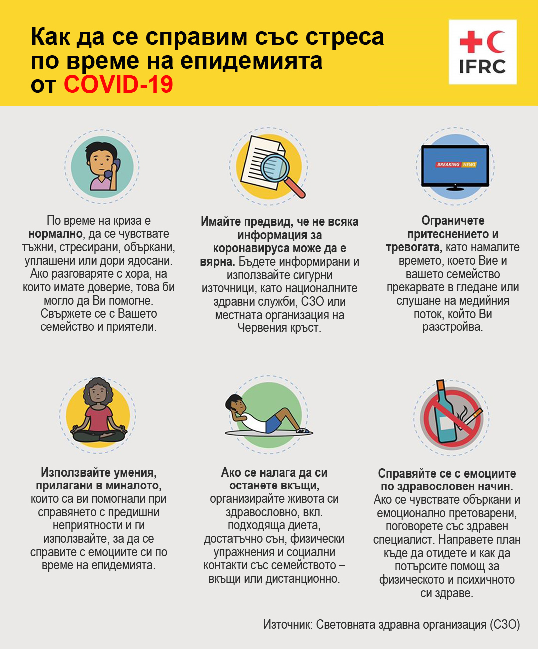 Очаква се Националният кризисен щаб да разпространи листовки със съвети за адекватно поведение в настоящата ситуация.Да не се забравя, че най-добрата превенция е самодисциплината и отговорността към себе си и околните!