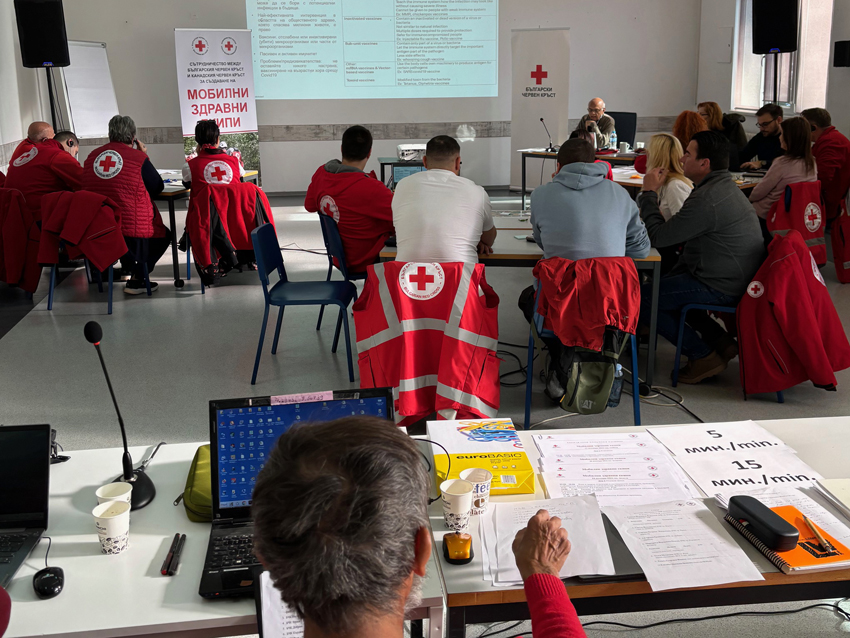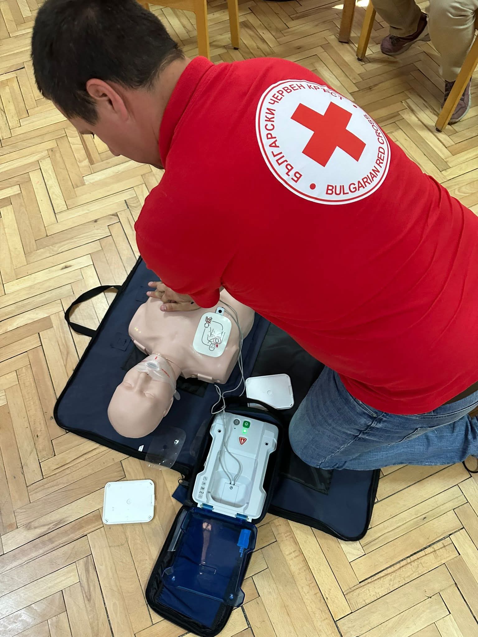 През м. ноември 2024 г, съвместно с Канадски ЧК бяха разработени модули и програма, за обучение на главните обучители (Master trainers), определени от областните/столичната организации и НЕРБАК. През м. юни 2025 г. бе проведен курс за сертифициране на 14 инструктори, от структурите на БЧК и НЕРБАК и двама от Украински ЧК по кардио-пулмонарна ресусцитация (КПР) и ползване на автоматичен дефибрилатор (AED). Обучението се проведе в НУЛЦ- Лозен, съвместно с експерти от КЧК, Университет Макгил, Монреал, Канада и Европейския център по ресусцитация (ERC). След обучението бе проведен и курс за служители и доброволци от Секретариатите на НС на БЧК и областните /столичната организации на БЧК и НЕРБАК по КПР и ползване на дефибрилатор. (Общ брой преминали обучение - 114 души). НУЛЦ - Лозен бе сертифициран от Европейския център по ресусцитация, като база за провеждане на регионални обучения. До края на м. ноември 2025 г. , на местно ниво бяха проведени 10 курса за обучение на членовете на МЗЕ, с участието на главните обучители (Master trainers) и представители на екипа по стандартна програма. (Общ брой преминали обучение - 121 души). Сертифицираните инструктори на БЧК по КПР/AED, проведоха 25 обучения по места, по отделен проект с МФЧК/ЧП.(Общ брой преминали обучение 409 души (217 украинци и 192 българи). През м. ноември се проведе курс по кризисни комуникации с 28 представители от областните/столичната организация на БЧК и НЕРБАК, с гост-лектори от Канадски ЧК и от клъстъра МФЧК/ЧП, Сараево. Към настоящият момент е предоставена част от одобреното (от партньора) оборудване за МЗЕ. БЧК съдейства за развитието на академични партньорства, в процес на подписване е четиристранен, рамков договор за сътрудничество между БЧК- КЧК - Университет Макгил, Монреал и Медицински университет – гр. Пловдив.