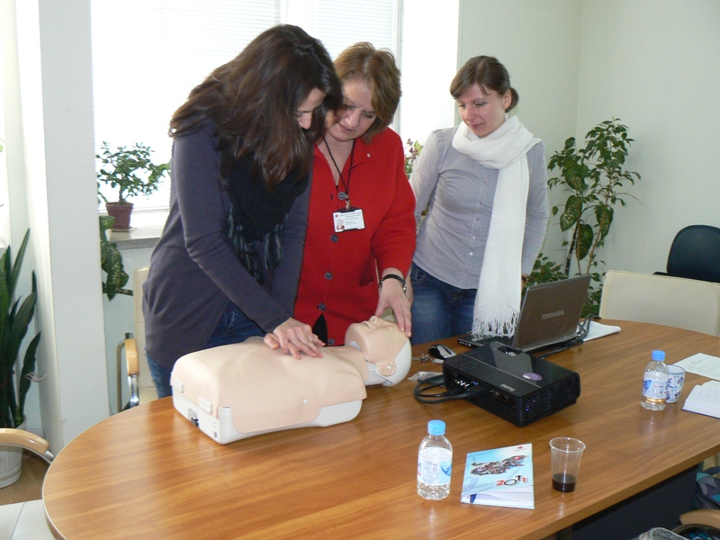 По време на обучението, базирано на червенокръсткия курс за делегати на национални дружества, участващите 21 доброволци от различни европейски страни бяха въведени в хуманитарните принципи и ценности на Червения кръст, запознаха се с основите на международното хуманитарно право, изучаваха как трябва да се поддържат взаимоотношения с други международни и местни организации на терен, действията, средствата и техниките за управление на риска от бедствия. Особено внимание бе отделено на начините за предотвратяване и преодоляване на стреса при работа в чужда среда, на телекомуникациите и комуникациите с медиите и на здравни и етични въпроси, възникващи по време на мисия. Обучението съдържаше и практическо упражнение, по време на което доброволците трябваше да се справят в условията на симулирана ситуация на конфликт.