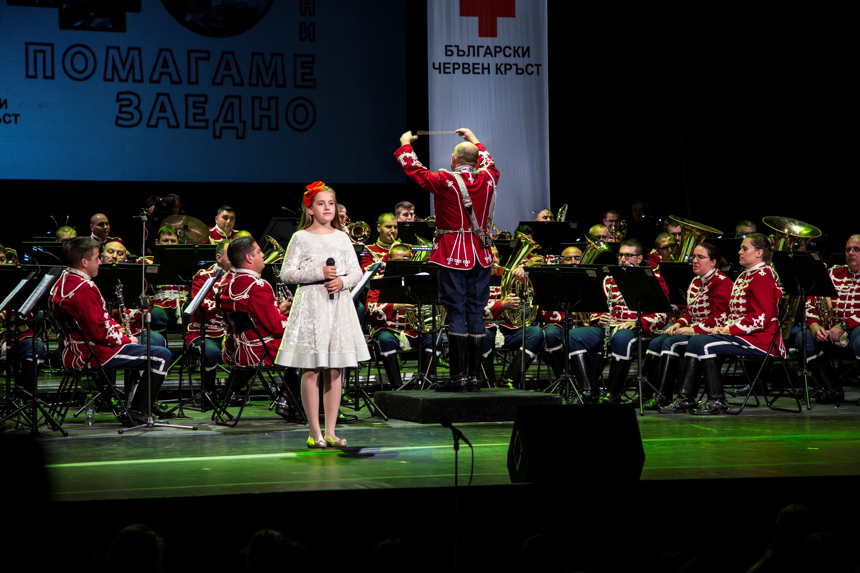 Последвалият тържествен концерт, чийто музикален домакин беше Гвардейският представителен духов оркестър под диригентството на подполк. Ради Радев, беше излъчван директно по БНТ, медиен партньор на събитието. Известни български музикални изпълнители - Еделина Кънева, Нели Рангелова, Михаела Филева, Ния, детският радиохор, музикална формация от Музикалното училище в София, Арт Войс Център Пловдив безвъзмездно предоставиха своето изкуство за хуманната кауза на Червения кръст. Професионалният подбор на изпълненията и сценарият на спектакъла бяха дело на режисьора Станислав Терзиев, а водещи на събитието бяха Мария Андонова и Стефан Щерев от БНТ.